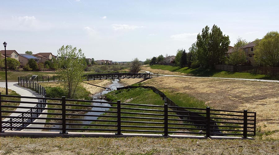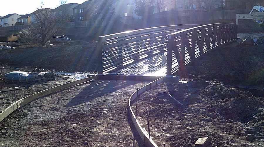 Earthwork, Dewatering, Traffic Control, Surveying, Clearing and Grubbing, Erosion Control, Soil Rip Rap, Concrete Trail, Concrete Abutments and Wingwalls, Structural Concrete, Pedestrian Bridge, RCP Pipe an FES, Safety Railing, Seeding and Mulching, Restoration