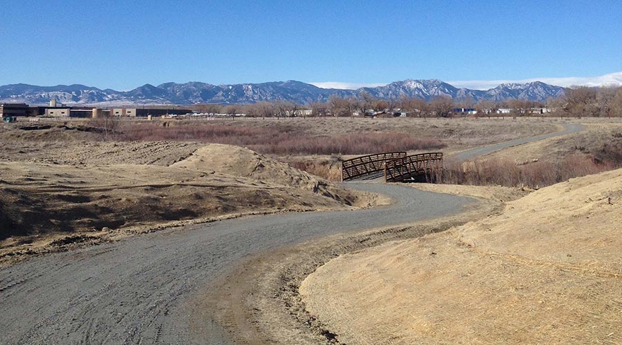 Trail construction effort in correlation with the Town of Erie, the Town of Lafayette and Boulder County. Project included earthwork, erosion control, dewatering, crusher fines trail, and four bridges with abutments. Also included drainage upgrades and various site amenities.