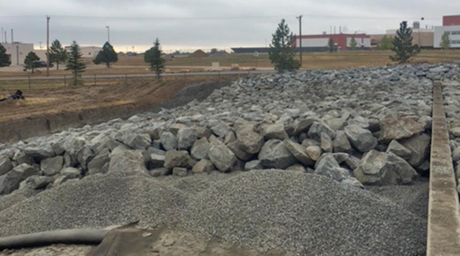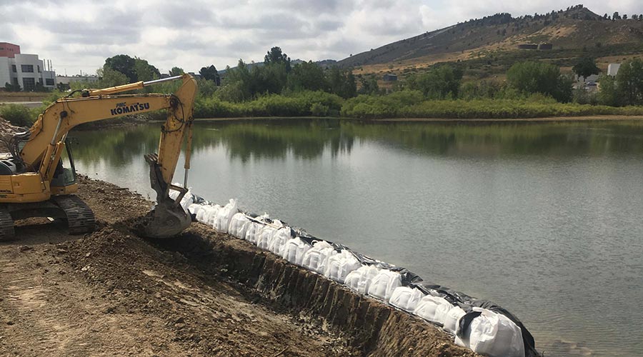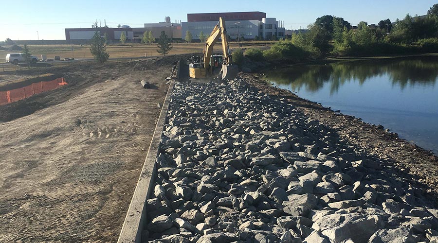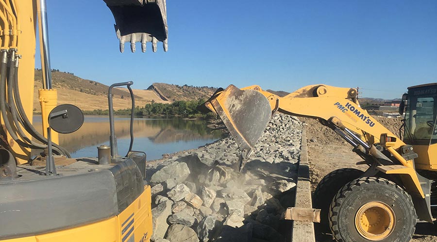 Construction of emergency spillway, inlcuding concrete sill wall and riprap. Excavation for the new spillway was used to raise and level the remaining dam crest.
