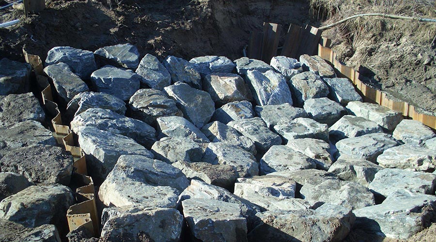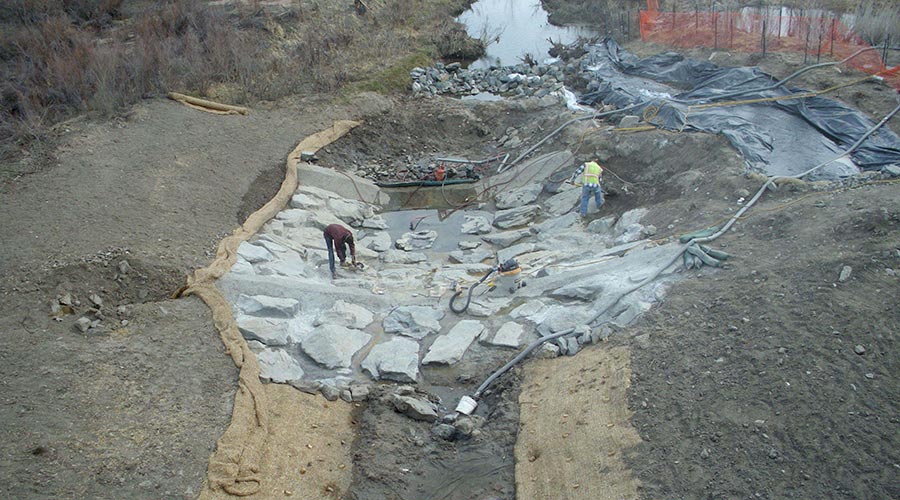 The work performed under this contract included installing a drop structure: Unclassified Excavation, Steel Sheet Piling (Type II), Soil Riprap (6 Inch & 12 Inch), Grouted Boulders (24 Inch & 30 Inch), Traffic Control, and erosion control.