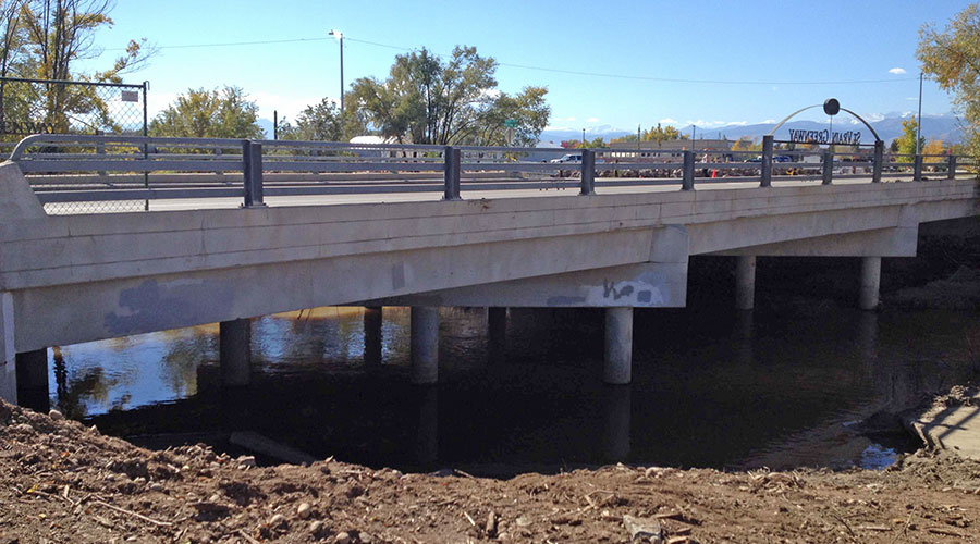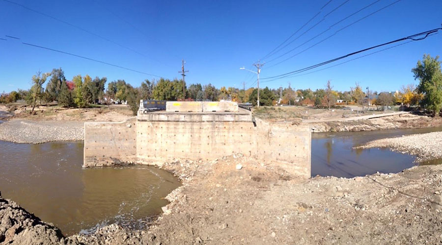 Removal of flood debris from underneath and adjacent to the Boston Ave/St. Vrain River Bridges as well as the Main Street/St. Vrain River Bridge. Work had to be completed in a timely manner due to high flows, without impacting the integrity of the bridge or nearby utilities. Water control methods were necessary to complete the work within the flows.