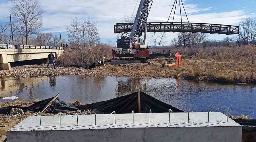 Drilled Caissons, Concrete Bridge Abutments, Pedestrian Bridge, Boulder Retaining Wall, and Concrete Bike Trail