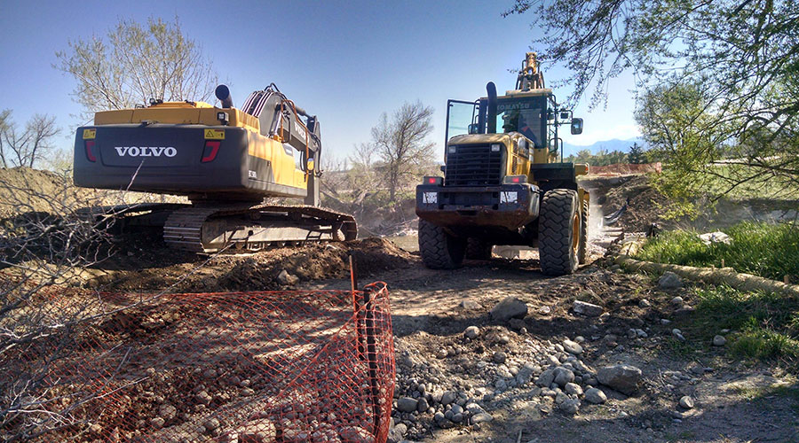 Restoration of Greenway Trail consisting of clearing and grubbing (debris removal), grading, concrete flatwork, crusher fines trail, slope stabilization, underpass electrical repair, concrete curb, site furnishings, fencing, signage, storm water piping, irrigation structure resetting, irrigation for landscaping and landscaping, seeding an mulching and 4" Waterline.