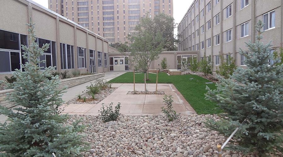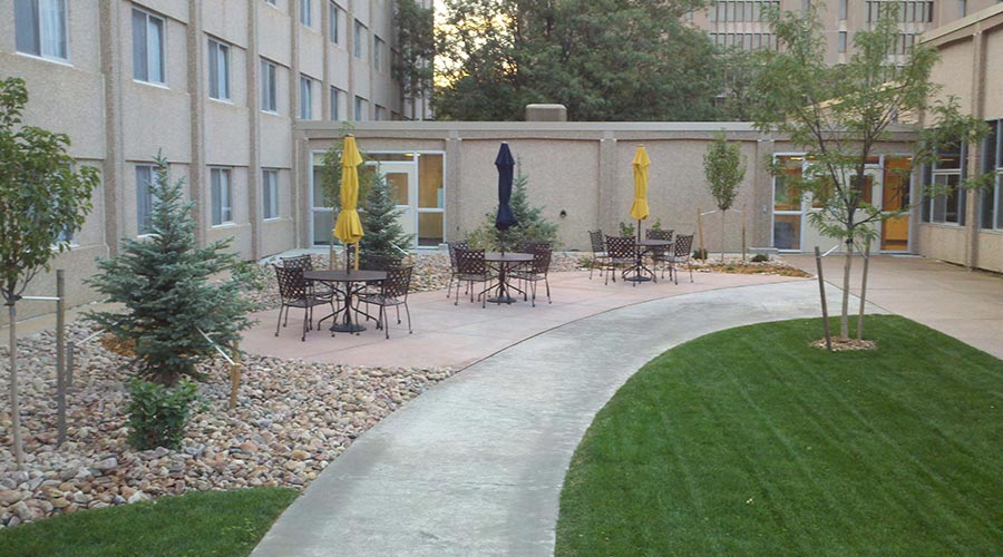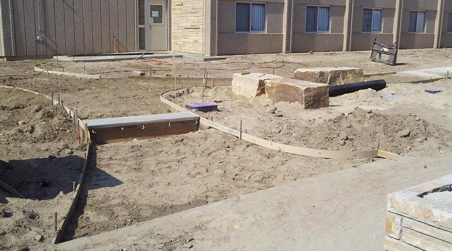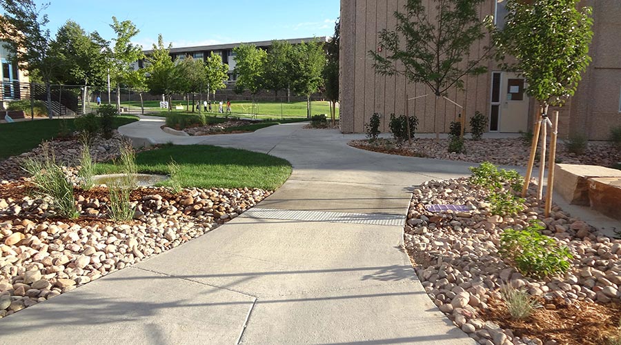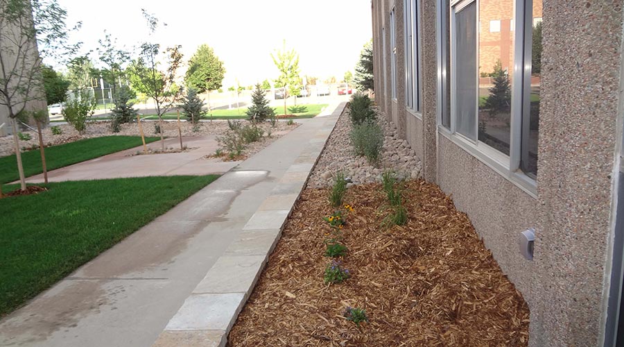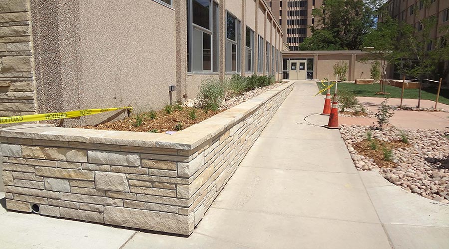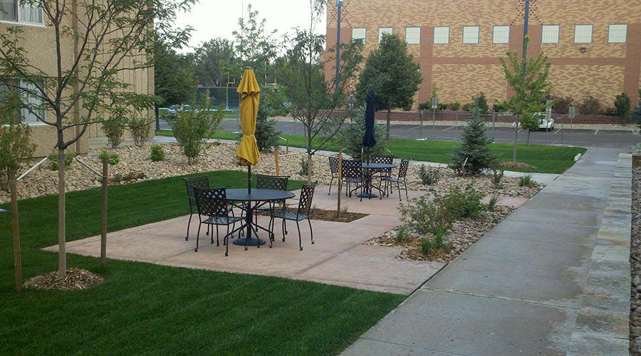 The project consisted of improvements along the West side of Harrison Hall on the Greeley Campus. Work included demolition, landscaping, plantings, drainage improvements, masonry, flatwork and handicap accessible ramps. All work was constricted to summer months to prepare for incoming students in the fall.
